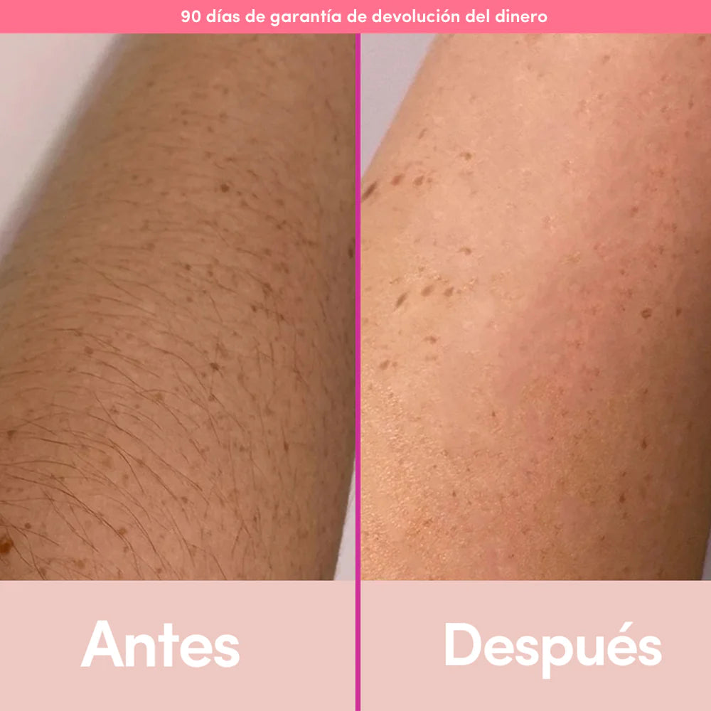 "¡Realmente funciona! Mis brazos están mucho más suaves y mi vellos prácticamente se ha ido. Tuve un crecimiento erizado en mis brazos después de solo 1 día (primera foto), ahora puedo pasar semanas sin hacer nada. ¡La diferencia es increíble!" - Maria F.